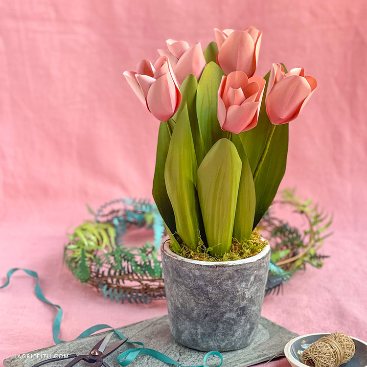 Go check and find all the info on how I did this. Though I have made tulips from printer paper and will share them here as well these crepe blooms are so easy to make and perfect for that pop of spring color. Tulips are a classically spring flower.