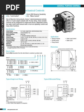 Series LWC800 Self-Contained Low Water CutOff. Warrick Series 16M Controls Installation and Operation Bulletin Form 167. Download the Gems Sensors Controls ELS-1150 installation instructions bulletin.